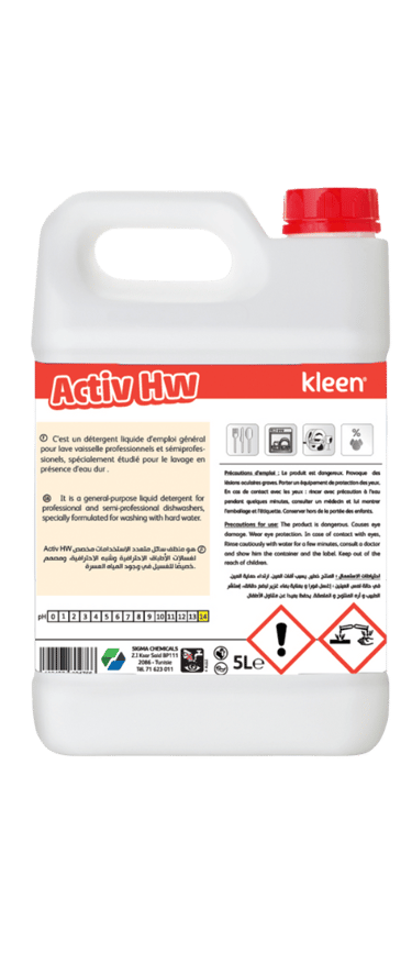 ACTIV HW est un détergent professionnel spécialement formulé pour le lavage de la vaisselle en eau dure. Sa formule concentrée élimine efficacement graisses, résidus alimentaires et dépôts calcaires, garantissant une vaisselle parfaitement propre et brillante. Conçu pour résister aux conditions difficiles, ACTIV HW assure une performance optimale et protège le matériel de lavage contre les dépôts minéraux.