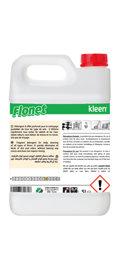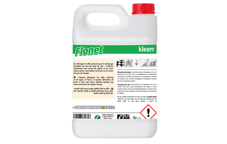 FLONET est un détergent parfumé spécialement conçu pour l’entretien régulier des sols lavables. Sa formule combine un excellent pouvoir nettoyant et une senteur fraîche qui persiste longtemps après le nettoyage. Adapté aux environnements professionnels à forte fréquentation, FLONET assure des sols propres, brillants et agréablement parfumés, tout en respectant les surfaces et les utilisateurs.